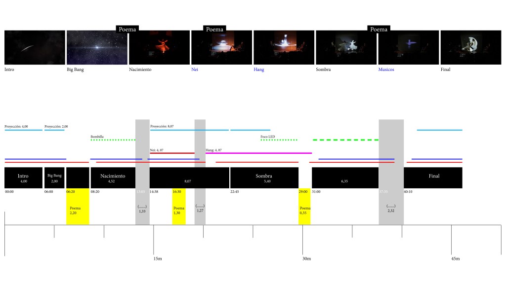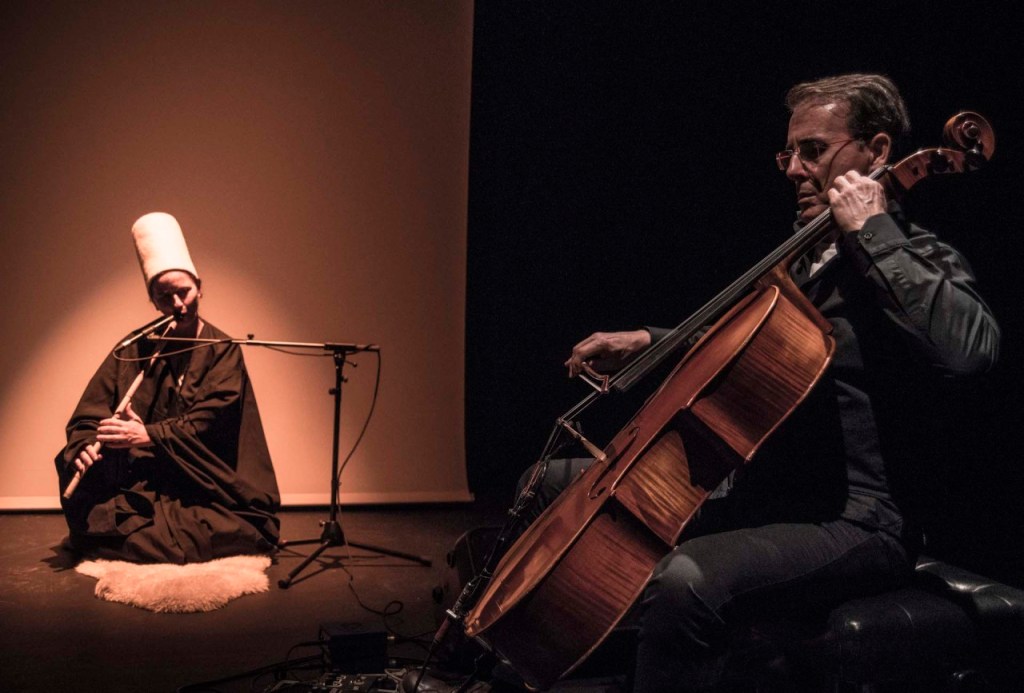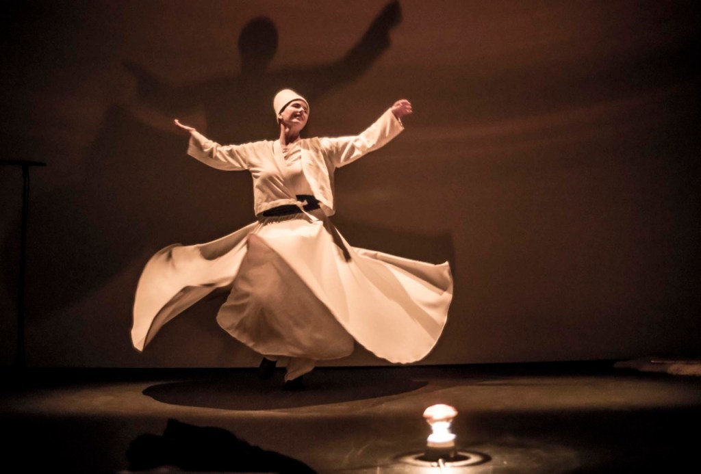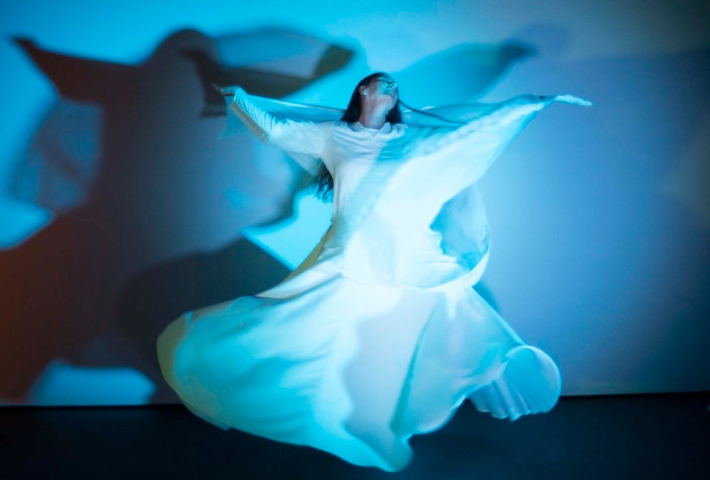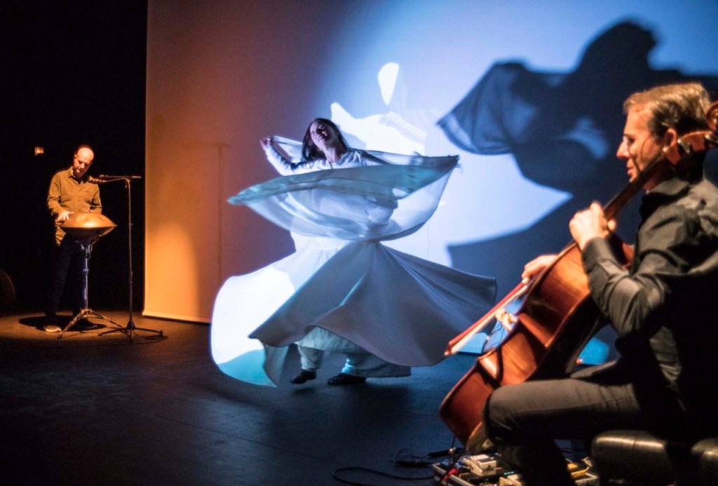 Cosmosis is the first project of InDrift. It combines whirling, live music, poetic recitation and live visual projections. The topic is the birth and expansion of the Universe and man being in oneness with all this. The dichotomies and contrasts inherent in existence are the guiding thread on which this proposal is based. Through light and darkness, harmony and noise, movement and stillness, logos and chaos the cyclical processes that govern our life are expressed: the one who inhales, will have to exhale; What expands, will eventually contract; The divergence will transform into convergence, birth leads to death, which gives way to new life. Through the hand of various artistic languages the public is invited to immerse itself in those fundamental mysteries for which there are no answers, only questions.