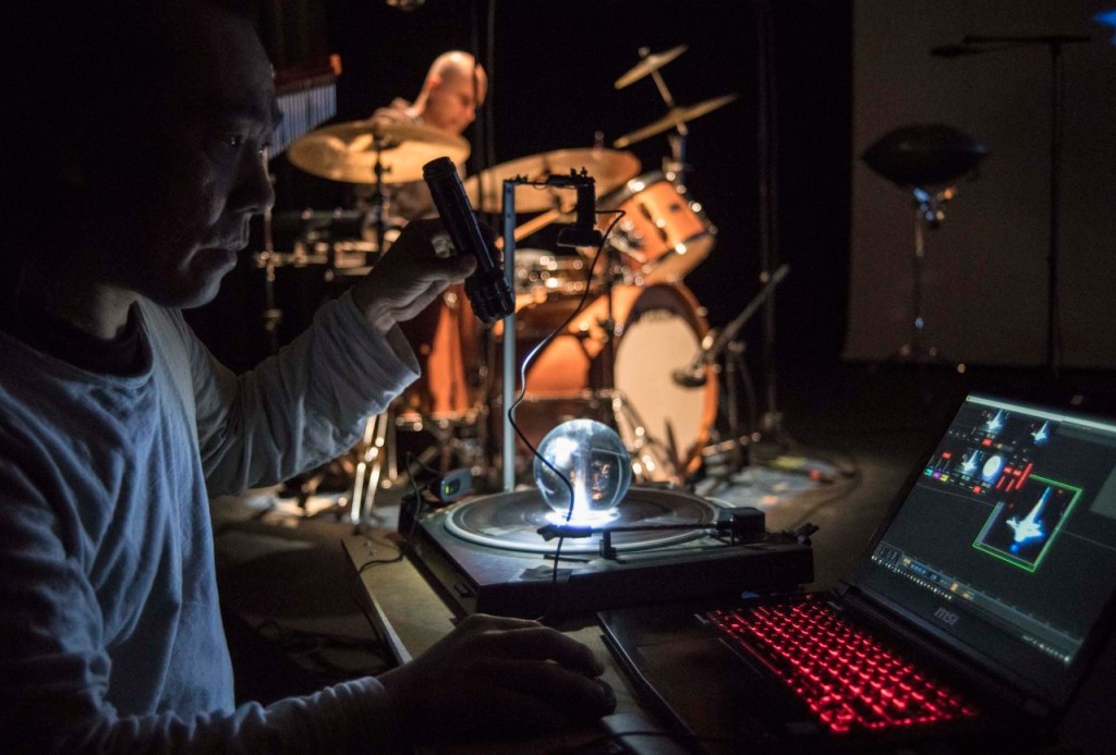 InDrift is a live performance group founded by four artists with an unconventional heterogeneous mix of talents and backgrounds. Through the interaction between its members different artistic vocabularies are combined and merge into unique new expressions. InDrift is a special confluence precisely because of the baggage provided by each of its four members: Dea Woon Kang, audiovisual artist with extensive experience in lighting and video creation in avant-garde shows; Miguel Jaubert, a cellist who has developed his career in both classical and experimental music and fusion; Antonio Koppel, drummer and percussionist linked to mainstream music projects and Karen van Serai, dancer whose natural element is whirling and oriental music.