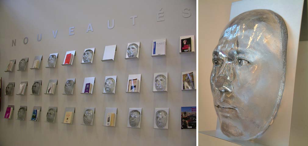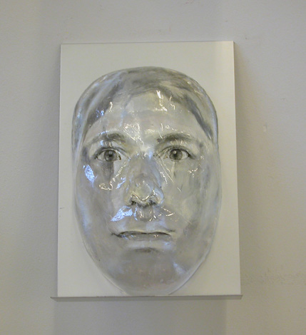 He realizado un retrato fotográfico en blanco y negro de cada partícipe en la exposición pero en lugar de revelar estas fotografías en un soporte tradicional las he superpuesto a estas máscaras de resina transparente que son, en realidad, un autorretrato escultórico, reproducido en catorce ejemplares. El resultado presenta una gran ambigüedad que está causada por la doble identidad expresada por la máxima imbricación de los dos retratos que no forman al final sino uno. Las máscaras han sido colocadas en el apartado de novedades de la biblioteca, alternándose con algunos libros. De esta manera, todas las obras mostradas en la exposición, a través de la imagen –alterada- de sus creadores, son presentadas al visitante como si formaran parte de los fondos de la biblioteca, integrándose así en dicho espacio.